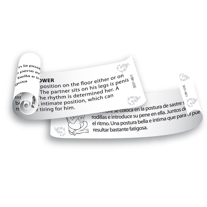 Une sensation pour vous et votre partenaire ! Vous ou votre partenaire retirez un rouleau du cœur à l’aide d’une pince à épiler. Quelle position érotique vas-tu faire ? Est-ce « la balançoire », « le bateau de l'amour » ou « le culte » ? Osez le défi ensemble et vivez ensemble plaisir et intimité.